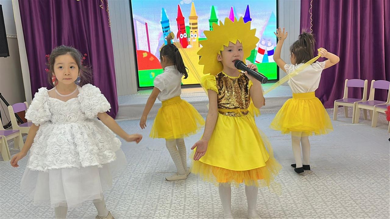 Барлық түстер бірге сахнаға шығады. Түс сиқыршысы түстердің сый екенін ишарамен көрсетеді.